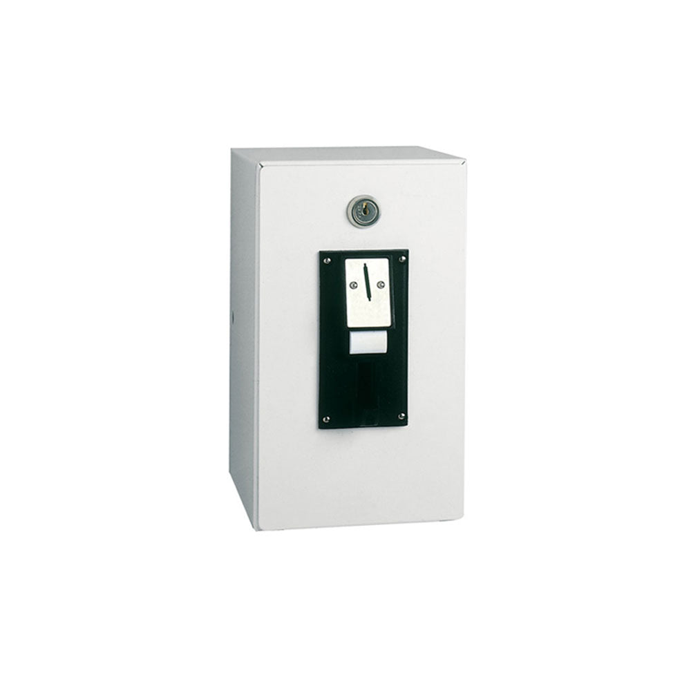 Art Gettoniera Per Doccia 150-700 - Erogazione Precisa è un oggetto di design pensato per bagni pubblici e comunità. Realizzata con corpo in metallo verniciato bianco e inserto centrale nero, propone linee pulite e proporzioni robuste. L’erogazione avviene tramite meccanismo a gettoni di precisione, progettato per offrire prestazioni costanti e una sensazione di controllo affidabile. Questo pezzo unisce funzionalità rigorosa a una sensibilità estetica senza tempo.