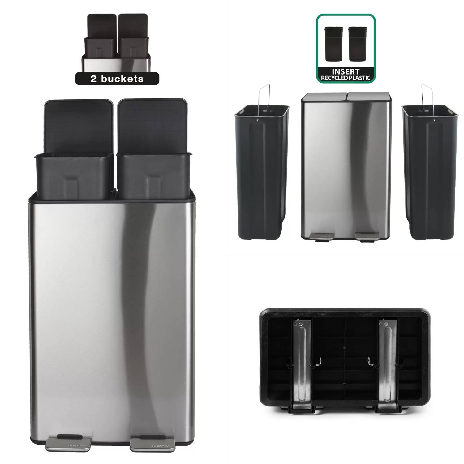 - Doppio contenitore da 30 L ciascuno per differenziare i rifiuti