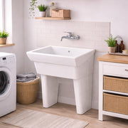 Il lavatoio da appoggio modello Messico in ceramica è la soluzione ideale per chi cerca un pezzo funzionale e di carattere per la lavanderia o il locale tecnico. Con linee classiche e proporzioni generose questo elemento firmato Ceramica Dolomite unisce resistenza e un aspetto curato, garantendo un punto d'appoggio pratico e durevole nel tempo. La finitura bianco lucido valorizza l'ambiente rendendo il lavatoio facilmente inseribile in contesti sia tradizionali che contemporanei. Pensato per un uso intensivo, offre grande capienza senza rinunciare a un design sobrio e riconoscibile.