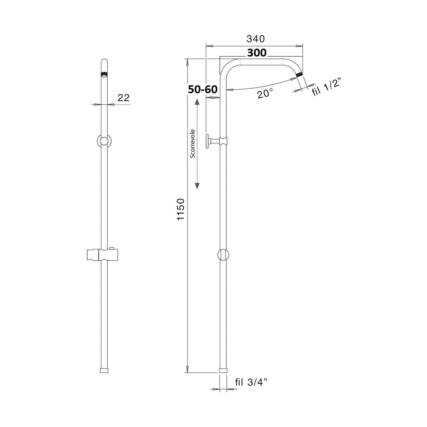 Colonna doccia C14 supporto scorrevole con attacco 3/4F