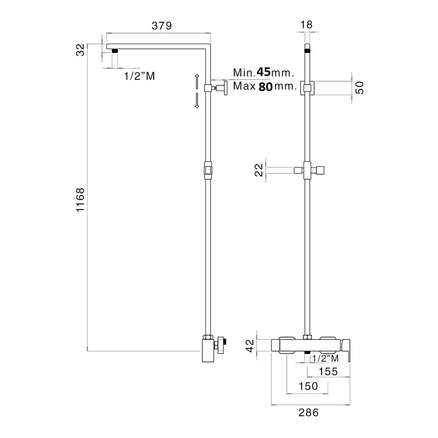 Colonna doccia quadra in ottone con soffione e termostatico TM3Q
