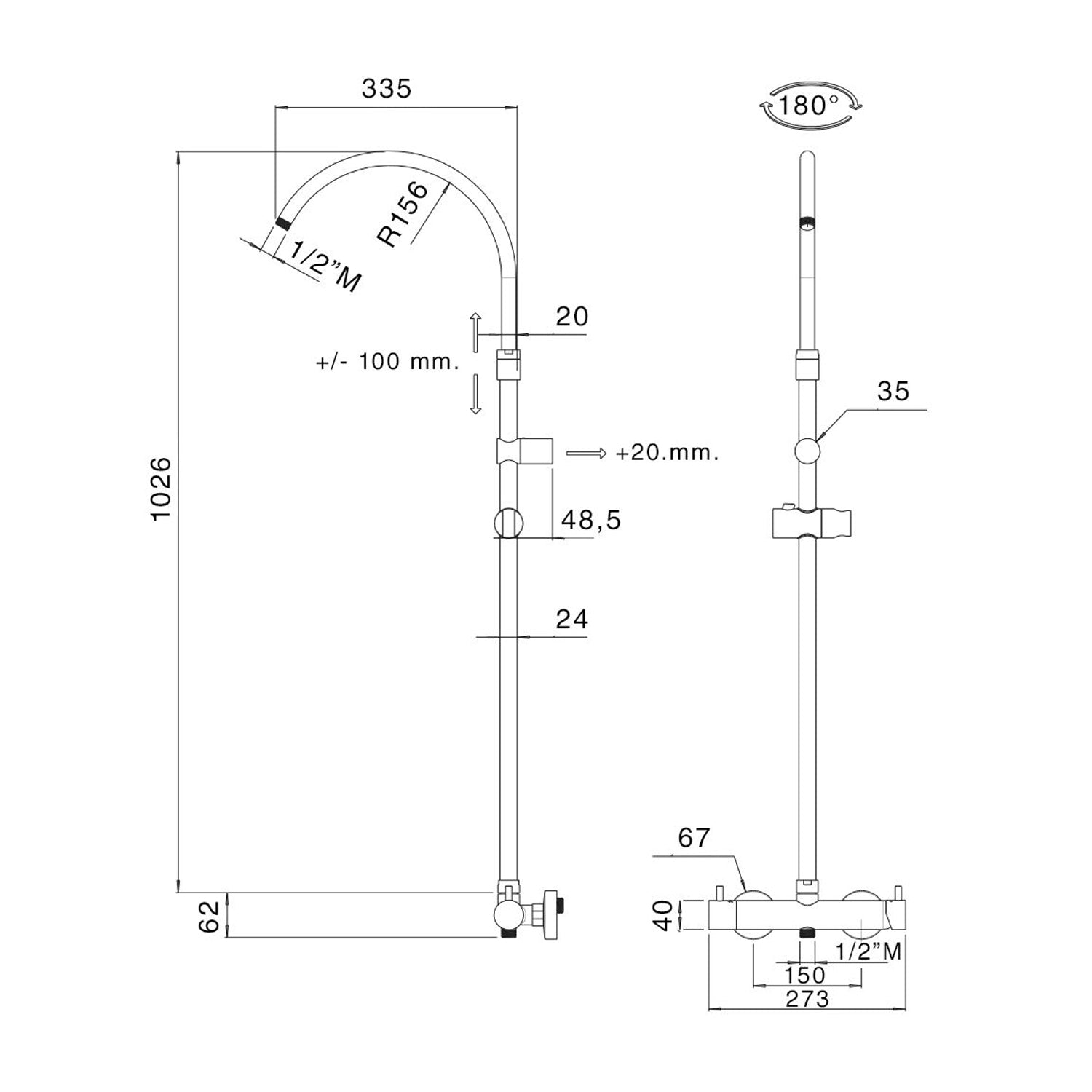 Colonna doccia regolabile in profondità con soffione Linz e termostatico TM3C