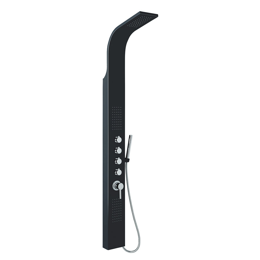 Parete doccia multifunzione modello Danubio in alluminio verniciato nero. Con soffione doccia, doccetta e getto orizzontale. Colore Nero