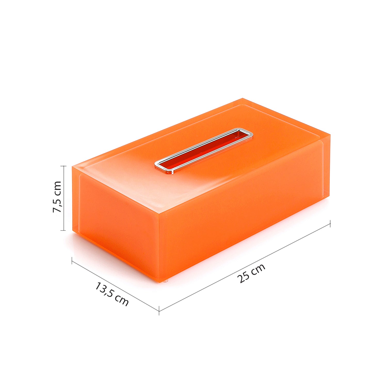 Portafazzoletti da appoggio Gedy Rainbow - Arancione è una presenza di carattere nel bagno, ridisegnando l’ordinario con una firma di lusso discreto. Realizzato in resine termoplastiche di alta qualità, il corpo traslucido cattura la luce e regala una tonalità arancione accogliente. La lavorazione precisa e le superfici lisce raccontano una maestria che coniuga estetica e funzione. Disponibile in quantità limitate, è pensato per chi apprezza pezzi destinati a durare nel tempo.