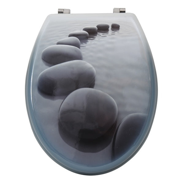 Sedile WC in MDF con cerniere in Acciaio Inox e stampa Sentiero di ciottoli - Grigio