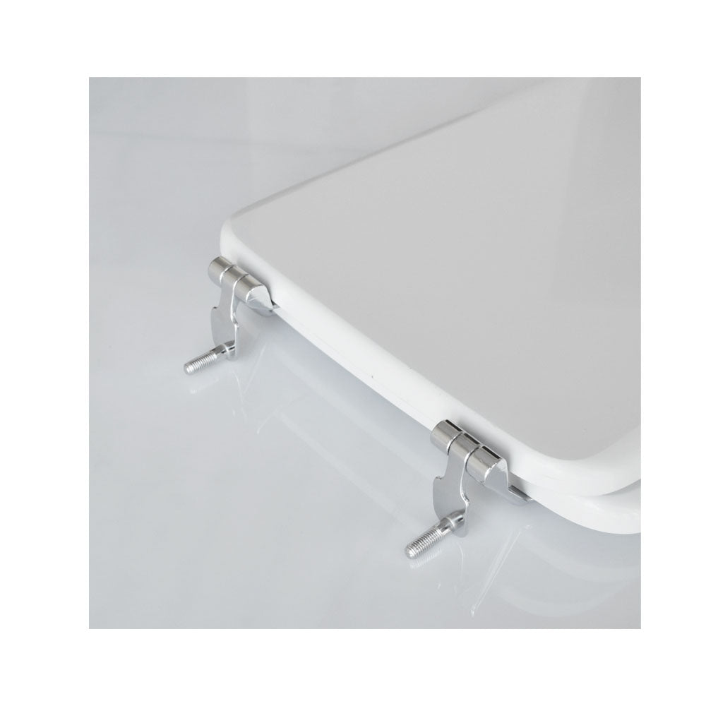 Questo sedile WC bianco è stato progettato per integrare l’eleganza sobria del Globo vaso Clio. Con una larghezza di 34 cm, propone una silhouette pulita e raffinata, priva di fronzoli superflui. Le cerniere fisse in ottone cromato offrono stabilità duratura e una lucentezza discreta, mentre la forma tipo 8, associata alle cerniere tipo B, assicura una chiusura controllata e un look impeccabile.