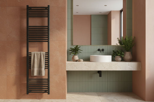 Visualizza tutti i dettagliRaffinata presenza, linee disegnate per durare. Il termoarredo H 150 x L 50 cm, interasse 45 cm, in finitura Nero opaco, porta nel bagno una sobria...