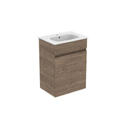 Mobile a terra con lavabo in ceramica da 64x46 con con due ante a chiusura rallentata finitura Noce Americano Scuro Ideal Standard Smart
