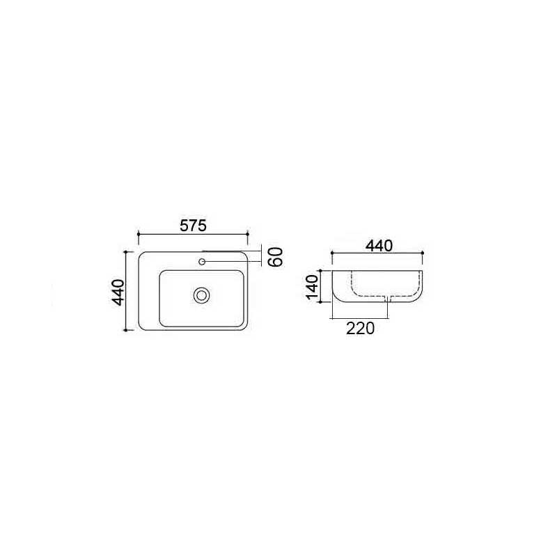 Lavabo d'appoggio o sospeso ceramica bianca 57,5x44 H.14 cm con troppo pieno