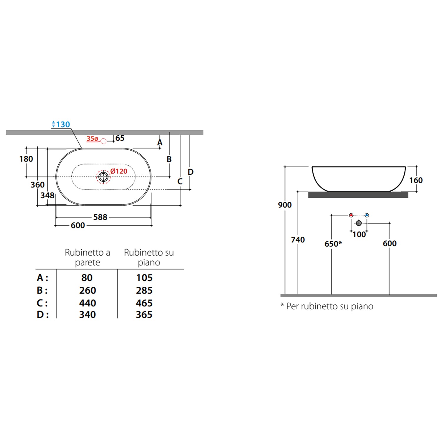 - Forma ovale e vasca da 60x36 cm, perfetta per bagni moderni.