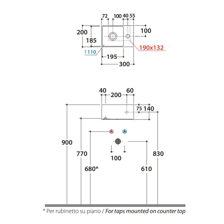 Lavabo cm 30x20x14h. Installazione da appoggio o sospesa. Completo di fissaggi. In ceramica bianca