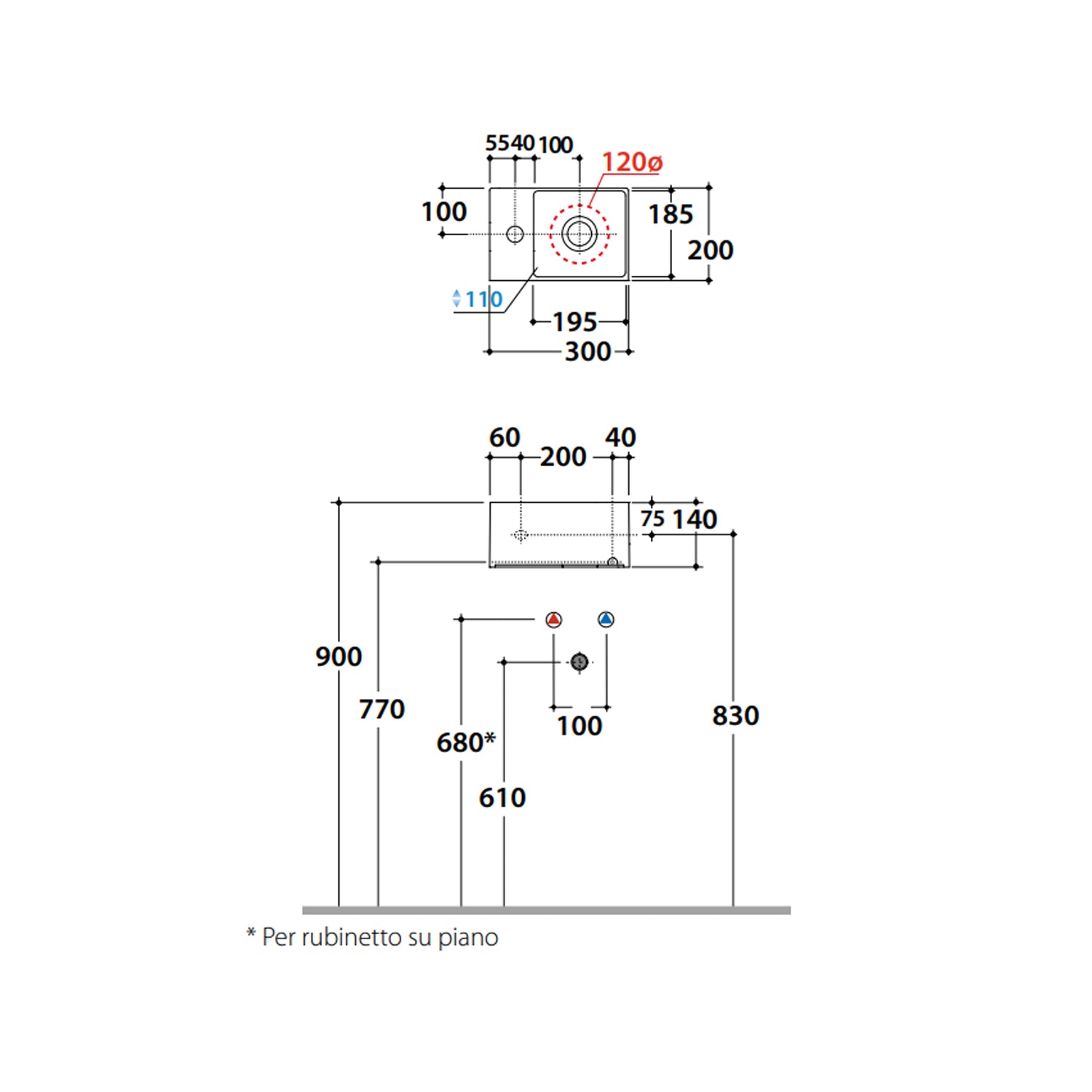 - Foro per rubinetto: foro dedicato sul piano, design pulito e funzionale