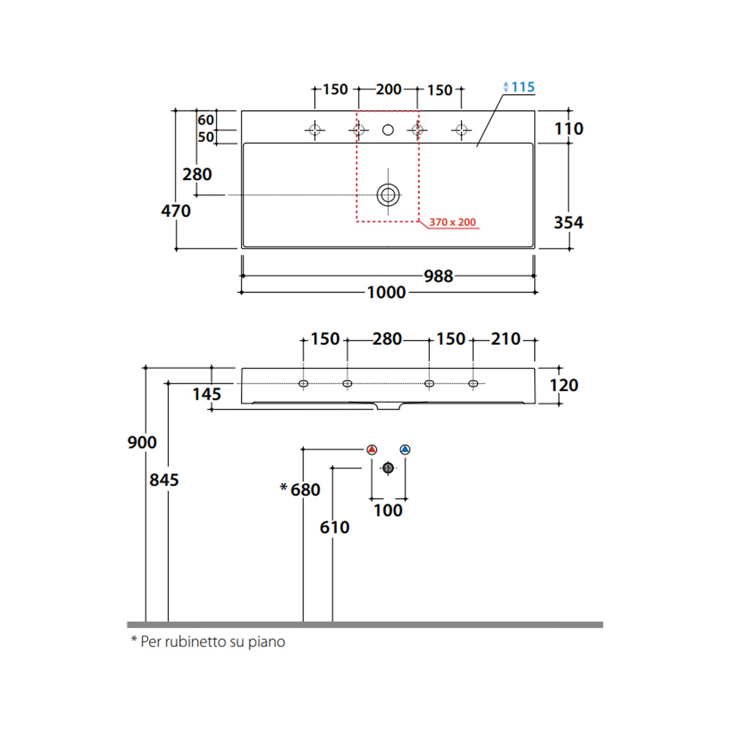 • Installazione Adatta sia a piano appoggio che a sospensione.