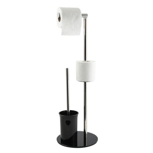 Piantana da bagno con spazzola porta rotolo con base in vetro nero