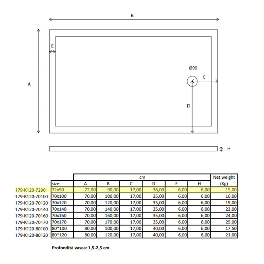 Il piatto doccia rettangolare Kepler 72x90 cm, alto 6 cm, esprime una sintesi di eleganza discreta e affidabilità tecnica. Realizzato in acrilico rinforzato con vetroresina e legno, combina robustezza strutturale e una linea pulita, pensata per bagni moderni e raffinati. La superficie è texturata per una presa sicura, con angoli interni squadrati che delineano un profilo minimale ma prestigioso. Con una profondità di vasca di 1,5-2,5 cm, offre drenaggio efficiente e una pianta sobria; fornito senza piletta, facilita un layout ordinato e privo di interruzioni. Disponibile in stock limitato, rappresenta una scelta di valore destinata a distinguersi nel tempo.