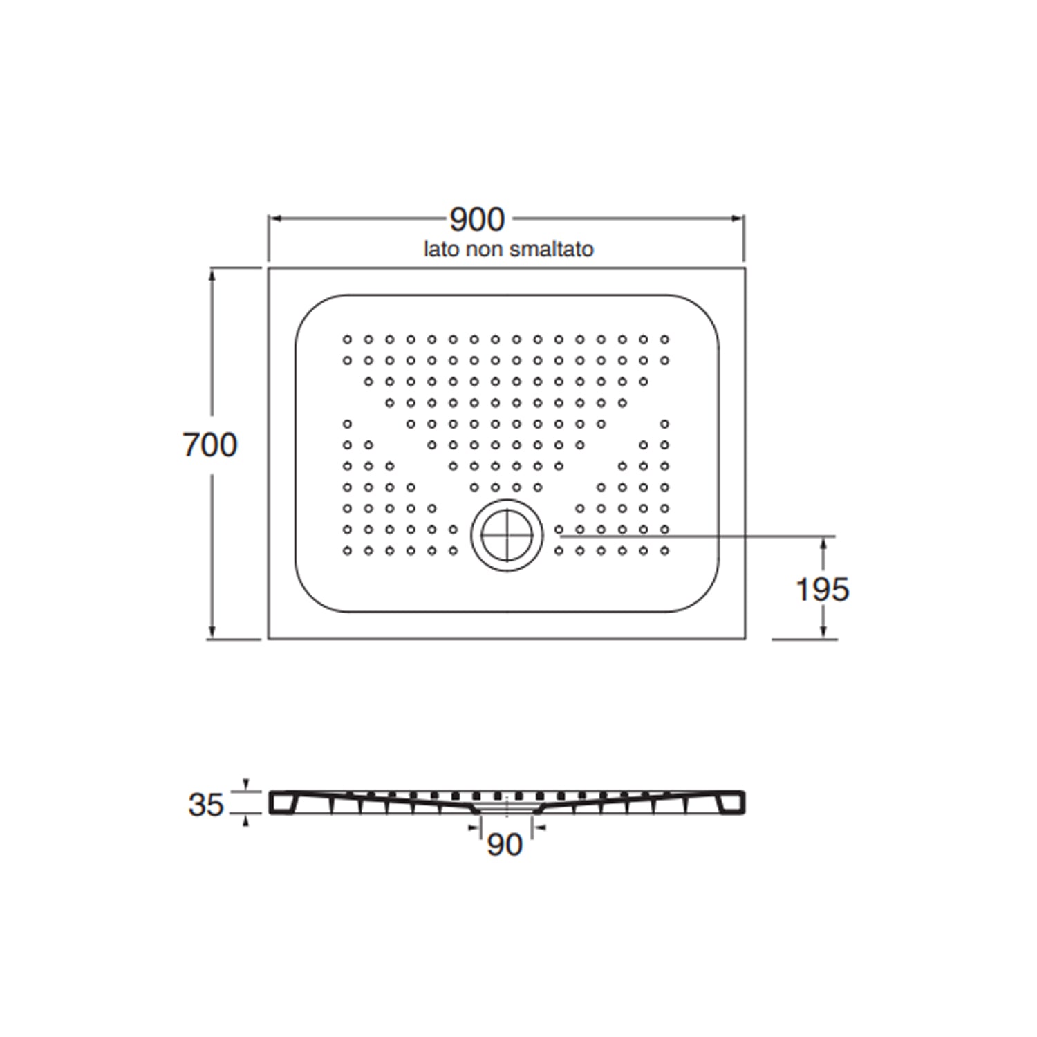 Il design sobrio e contemporaneo si integra con ambienti di arredo essenziali, offrendo una base comoda e sicura. La superficie presenta un motivo puntinato che favorisce una presa affidabile, mentre il drenaggio centrale con cornice cromata completa l’estetica pulita del pezzo. Una scelta di stile che migliora nel tempo, capace di arricchire il progetto di bagno con una forte aura di classe e, per chi colleziona pezzi distintivi, un valore duraturo.