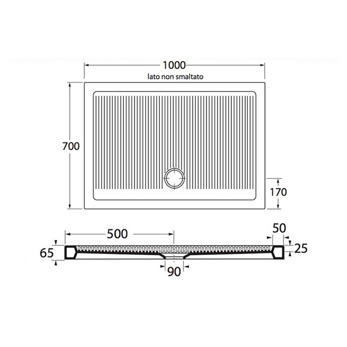 - Drenaggio: centrale, foro Ø90 mm (non inclusa)