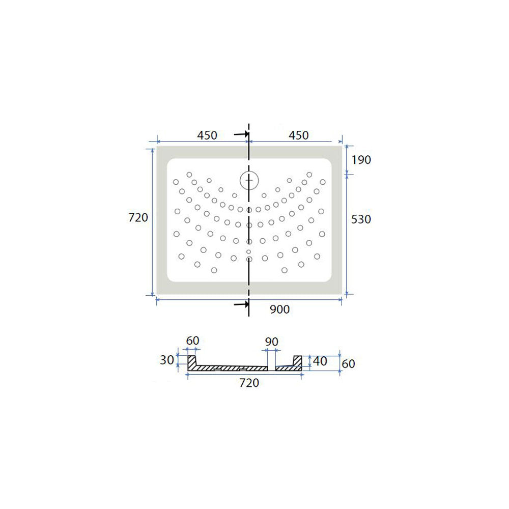 Piatto doccia rettangolare ceramica bianca 72x90 con altezza 6 cm