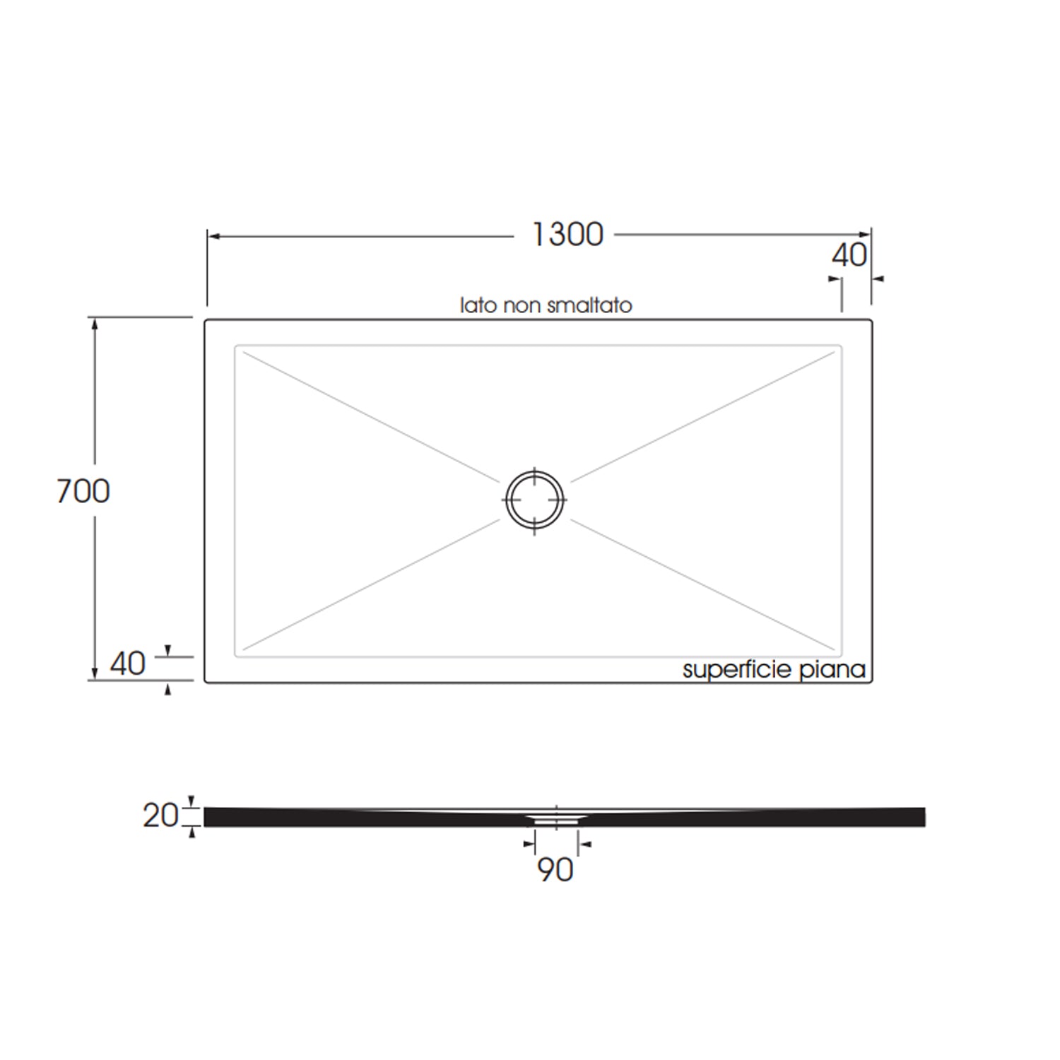 • Piatto doccia rettangolare in ceramica a tutta massa