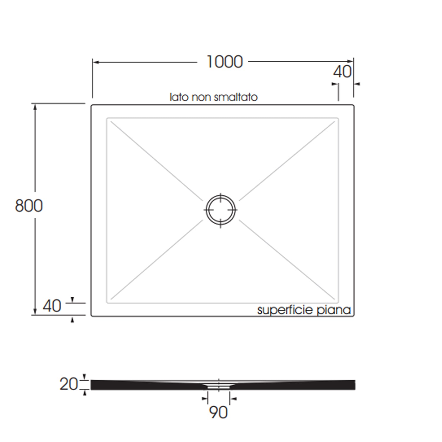 - Piatto doccia rettangolare in ceramica di alta qualità