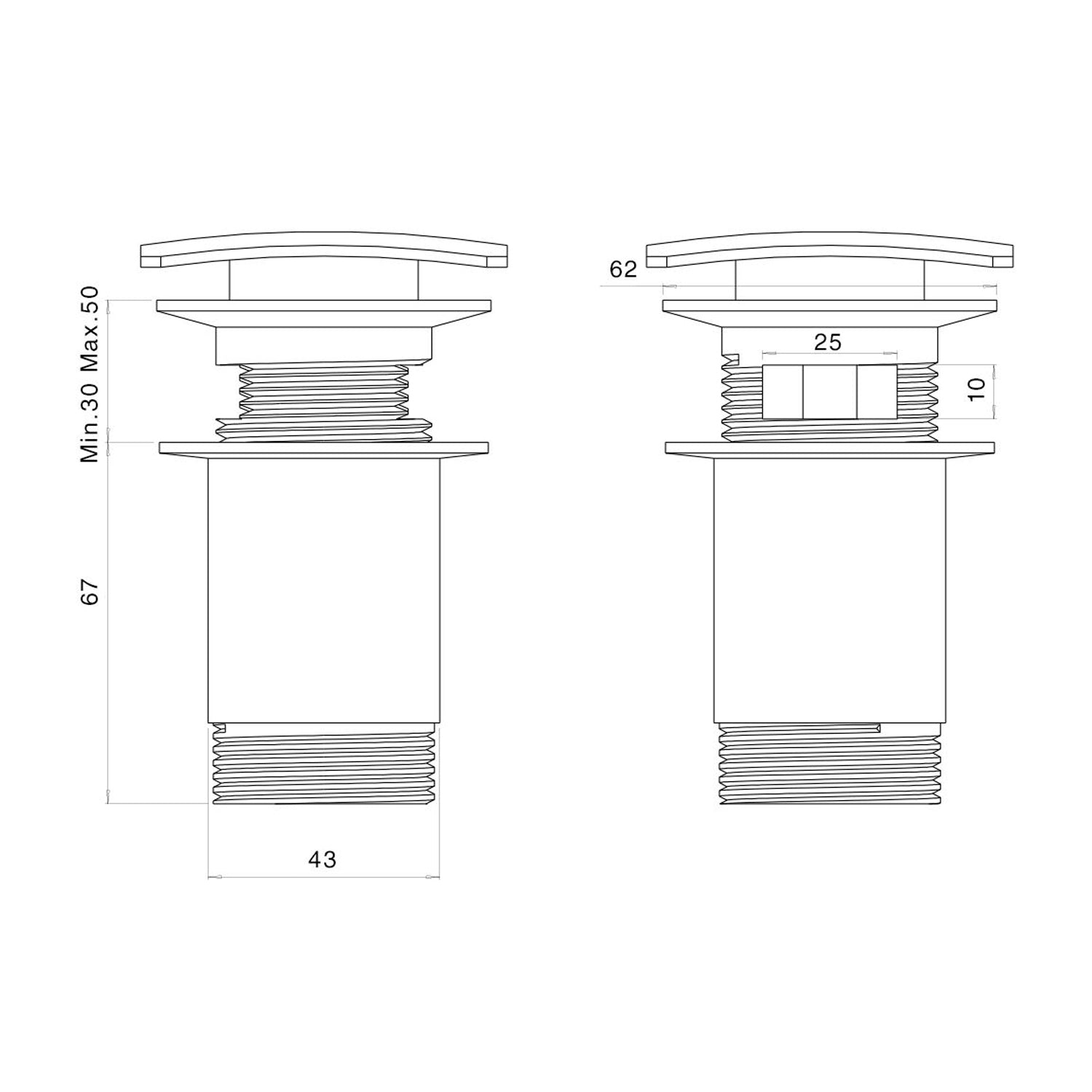 Scarico Click Clack tappo quadro senza troppo pieno in ottone