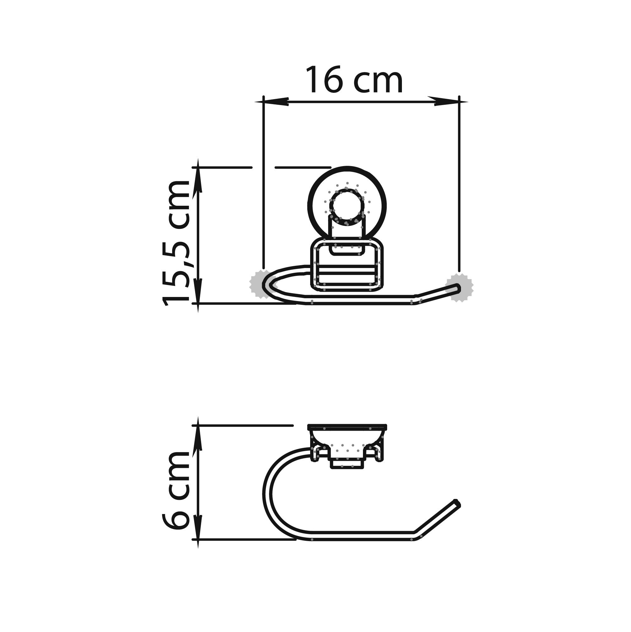 • Braccio porta rotolo dal profilo sobrio per sostituzioni agevoli.