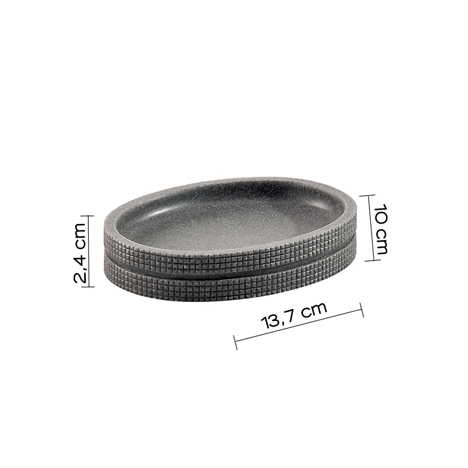 Il design ovale si integra con rubinetterie moderne e pezzi sanitari essenziali, mentre il profilo esterno propone un motivo a griglia che aggiunge profondità senza appesantire l’estetica. Questo portasapone non è solo un contenitore: è una scelta di stile che mantiene l’area lavabo ordinata e curata. Grazie alla costruzione robusta e all’eleganza senza tempo, rappresenta un acquisto che resiste all’usura del tempo e conquista con una raffinata discrezione.