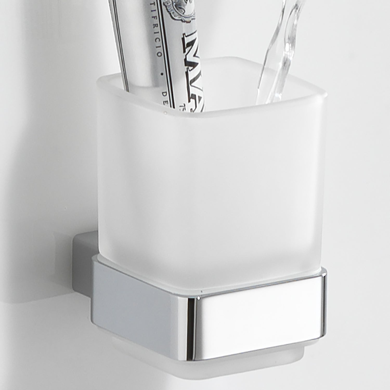- Portaspazzolini a parete con contenitore in Vetro Satinato