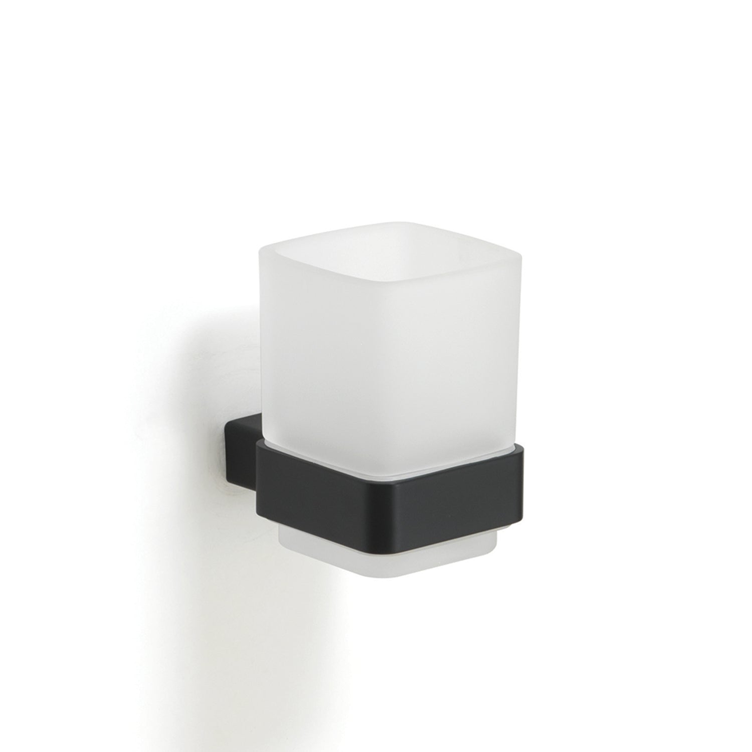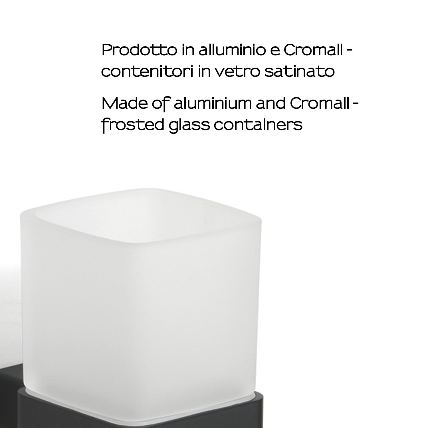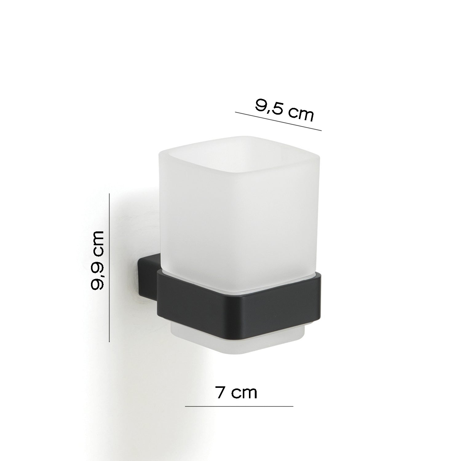 Portaspazzolini a parete con contenitore in Vetro Satinato Gedy serie Lounge - Nero Matt