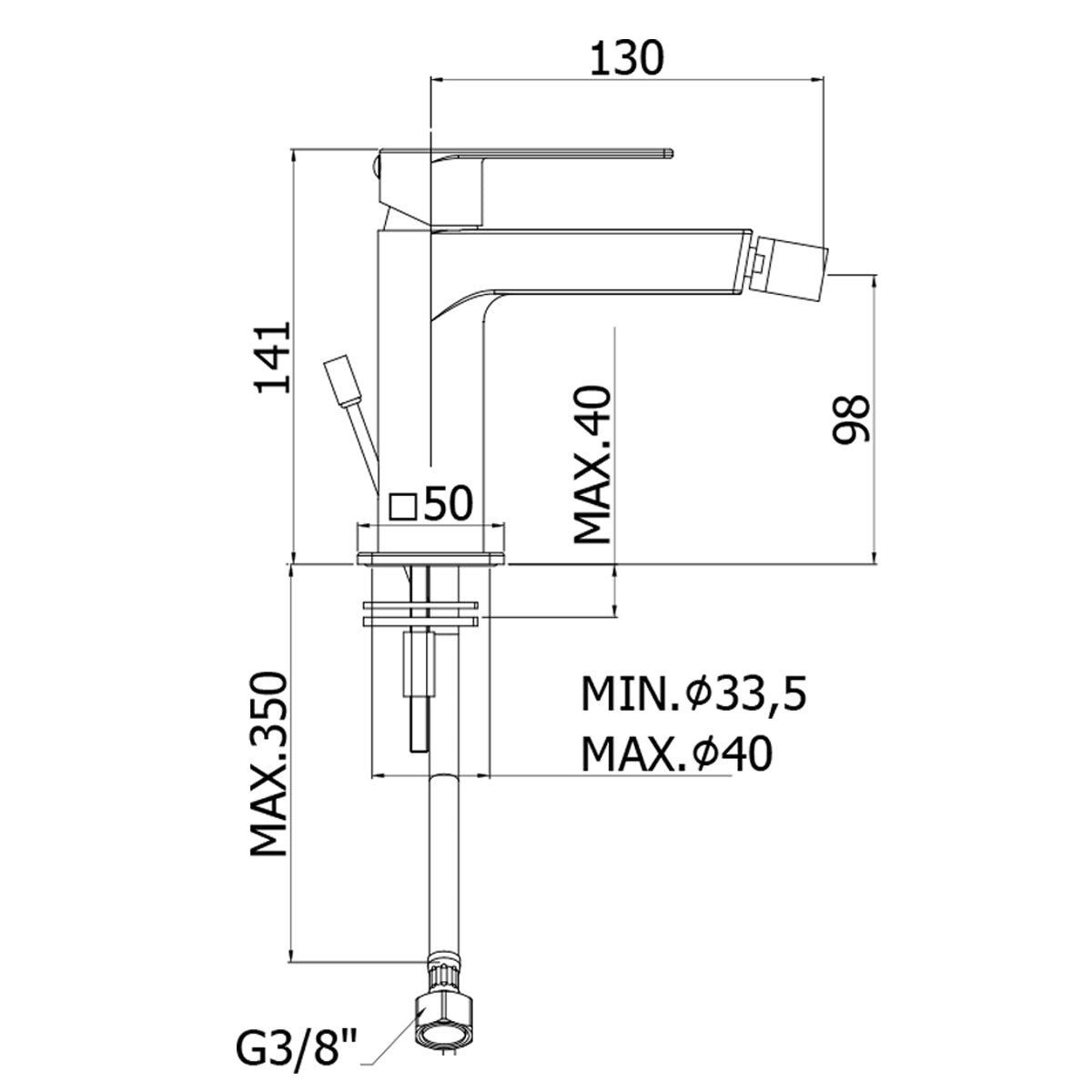 - Altezza corpo 141 mm; Lunghezza braccio 130 mm; Zona comfort 98 mm