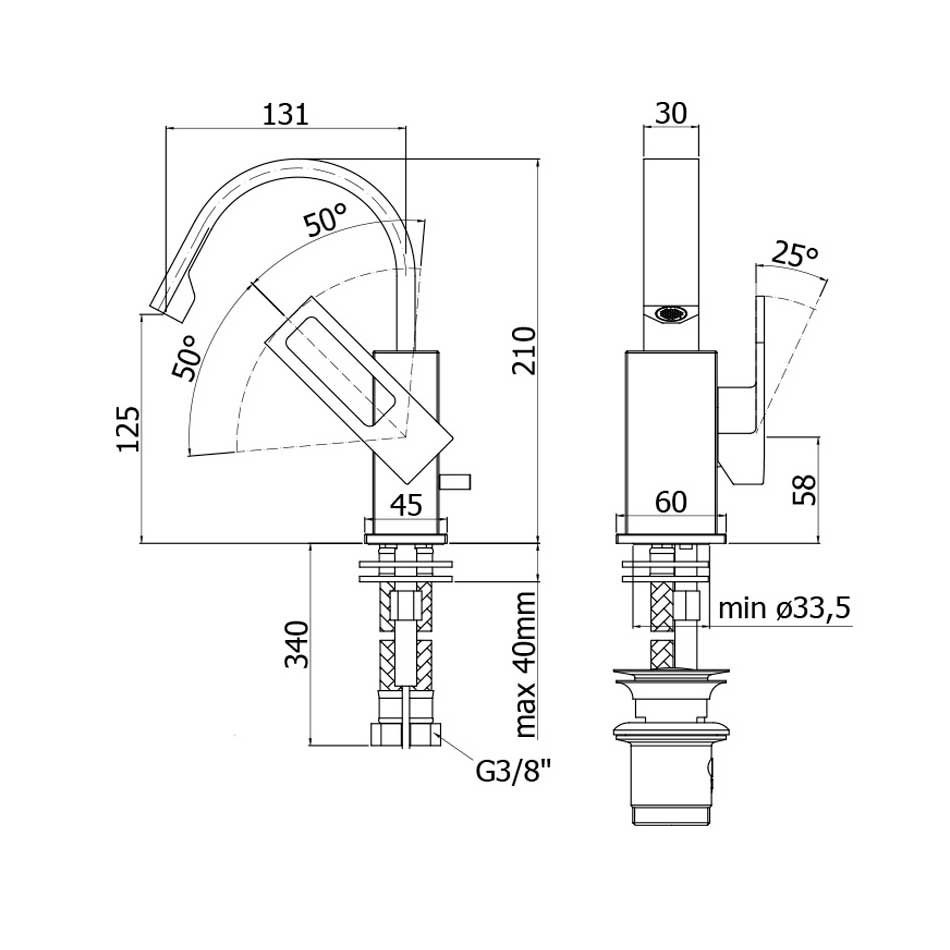Caratteristiche misurate e funzionali, pensate per un uso quotidiano ma destinato a durare nel tempo: costruzione monoforo, canna orientabile, aeratore M16,5x1, e tubi flessibili inox. L’eleganza minimale si completa con la finitura cromata lucida e il profilo squadrato che si integra armoniosamente con arredi contemporanei. Grazie al design essenziale e alla qualità dei componenti, questo rubinetto valorizza l’arredo bagno con stile sobrio e duraturo, ideale per progetti di ristrutturazione e installazioni su misura.
