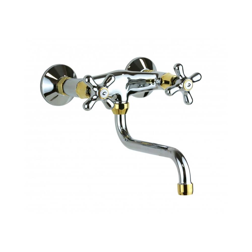 Gruppo lavello a doppia leva cucina a parete serie Iris modello IRV161CO Cromato oro Paffoni