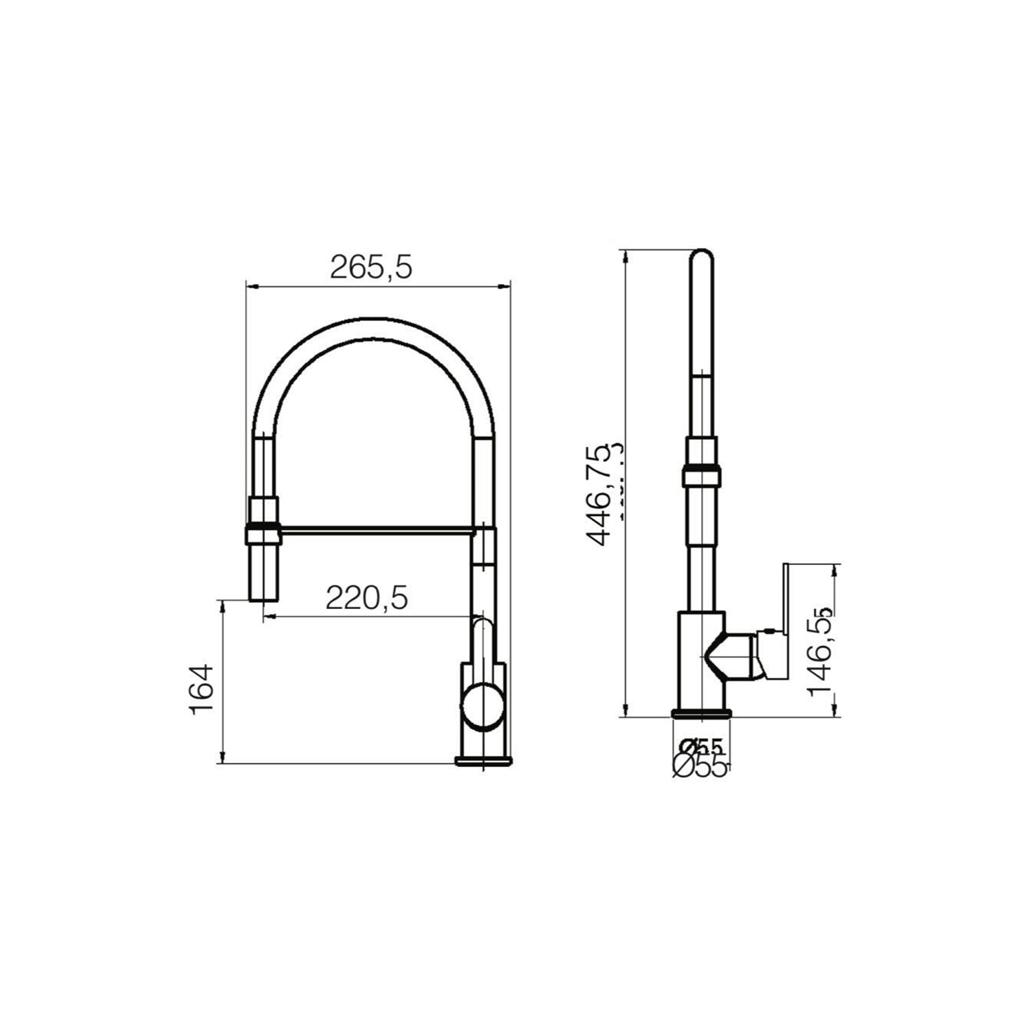 Miscelatore monocomando lavello con doccetta estraibile e canna flessibile modello Gave in ottone