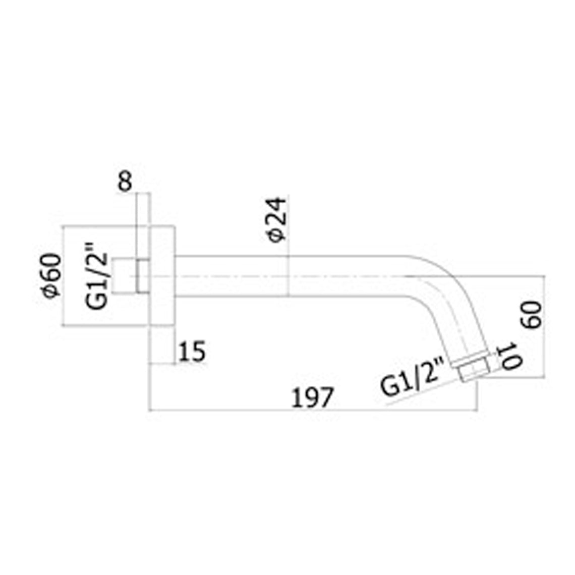 - Braccio doccia inclinato con base tonda (rosone) per un look sofisticato e stabile.