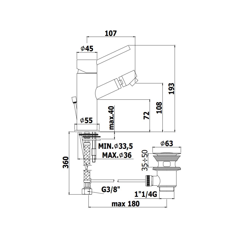 Miscelatore bidet monocomando senza Scarico serie Birillo modello BI131CR cromato Paffoni