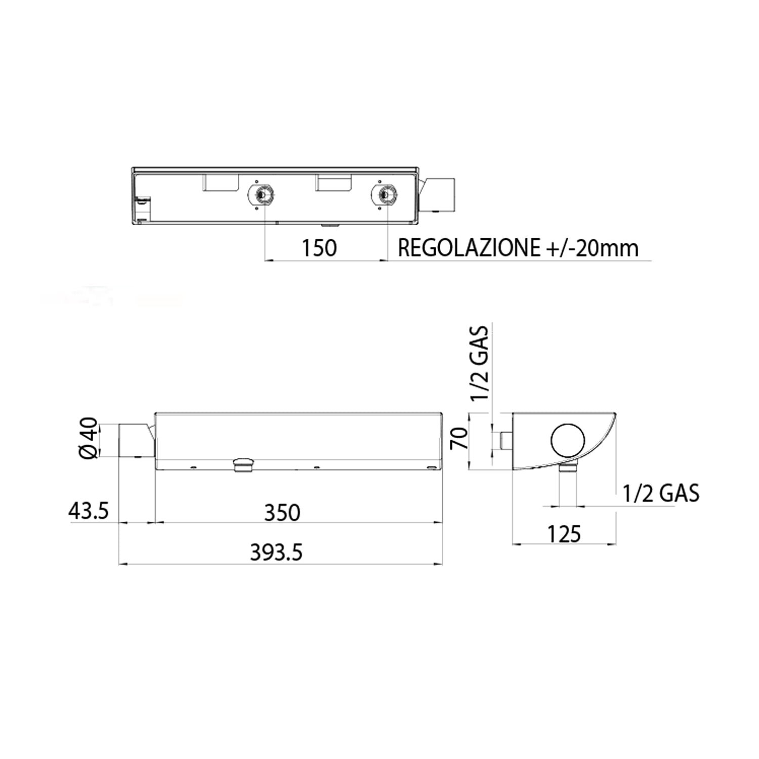 • Modulo esterno progettato per doccia e vasca, con attacchi standard per la connessione idrica.