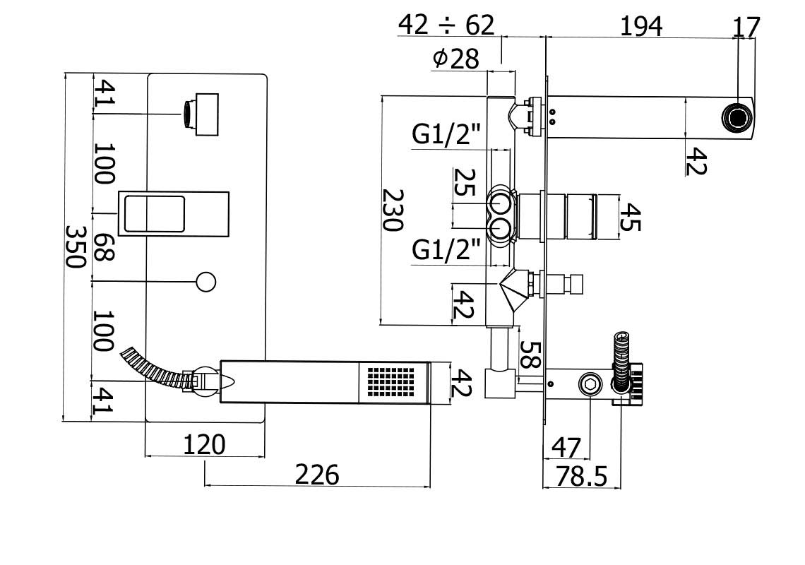 - Deviatore integrato per passare facilmente tra vasca e doccia