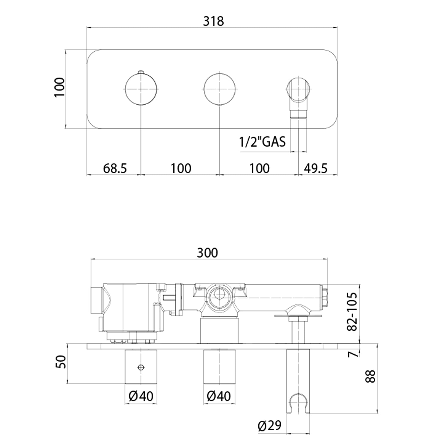 - Miscelatore termostatico a 2 vie con deviatore integrato