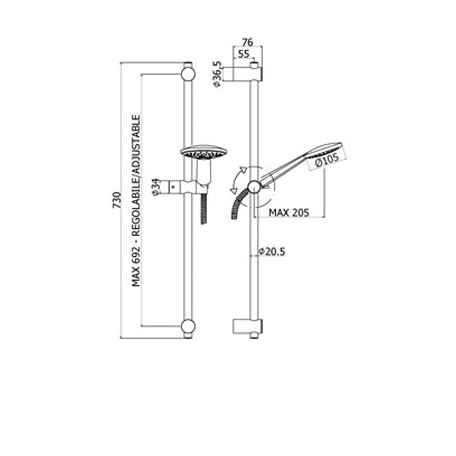 - Supporto doccia scorrevole in metallo per precise regolazioni