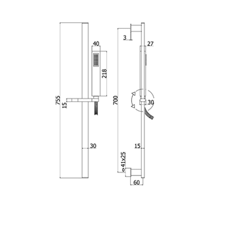 • Supporto doccia scorrevole in metallo