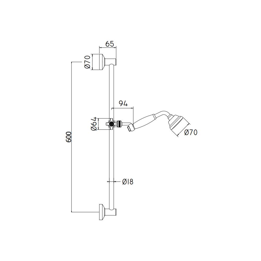 • Colonna doccia con barra regolabile per posizionamento personalizzato.