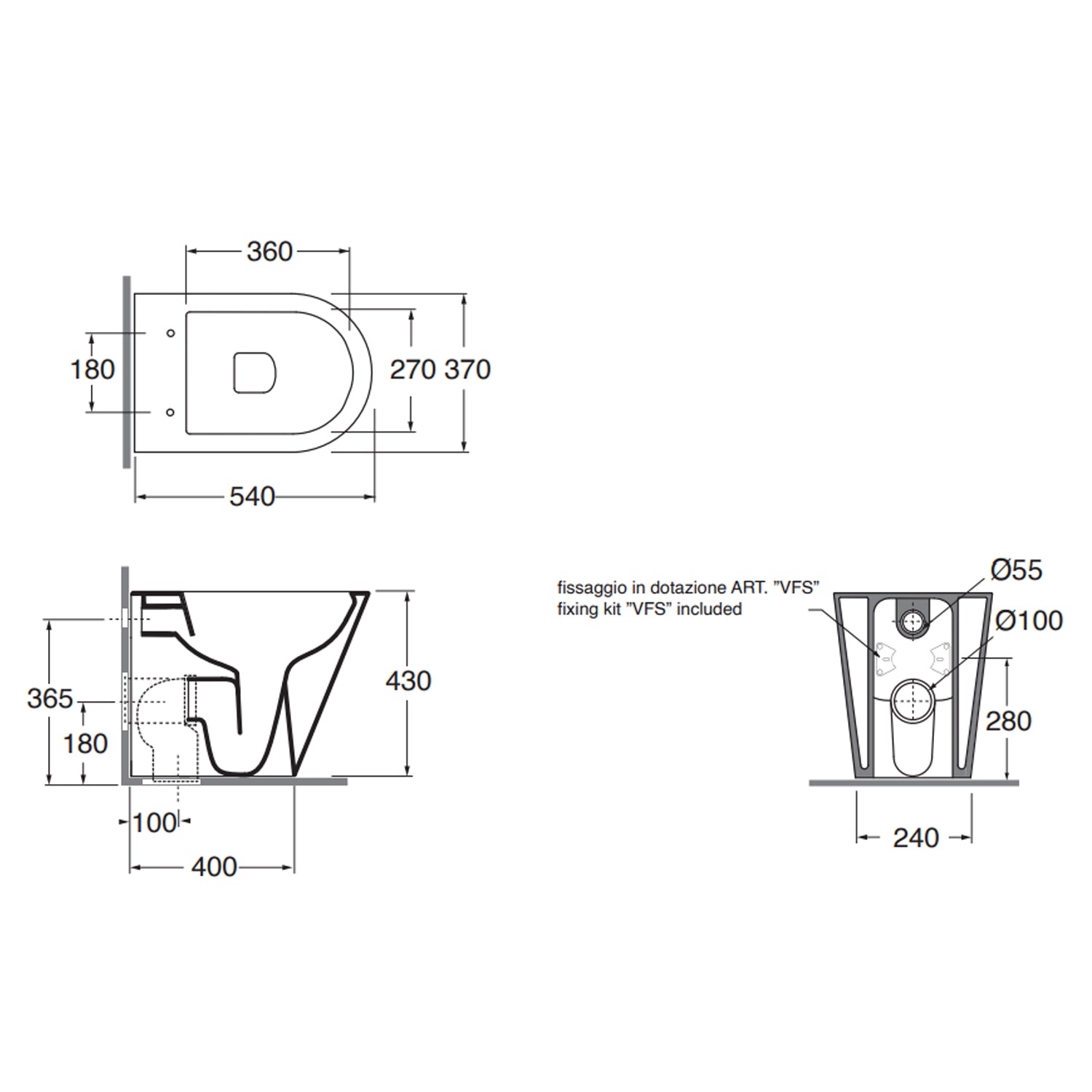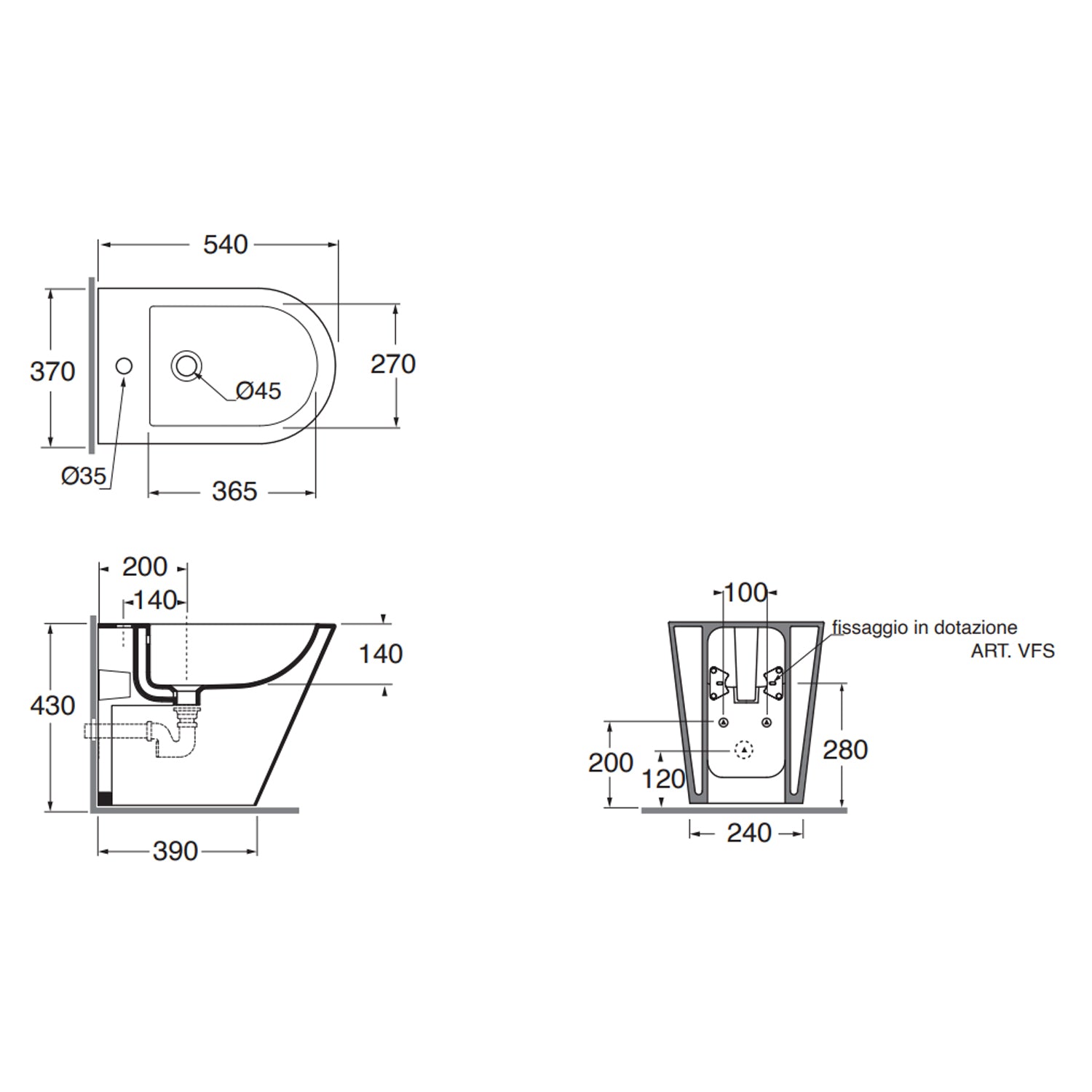 - Kit sanitario completo a terra (WC + bidet) in un'unica soluzione