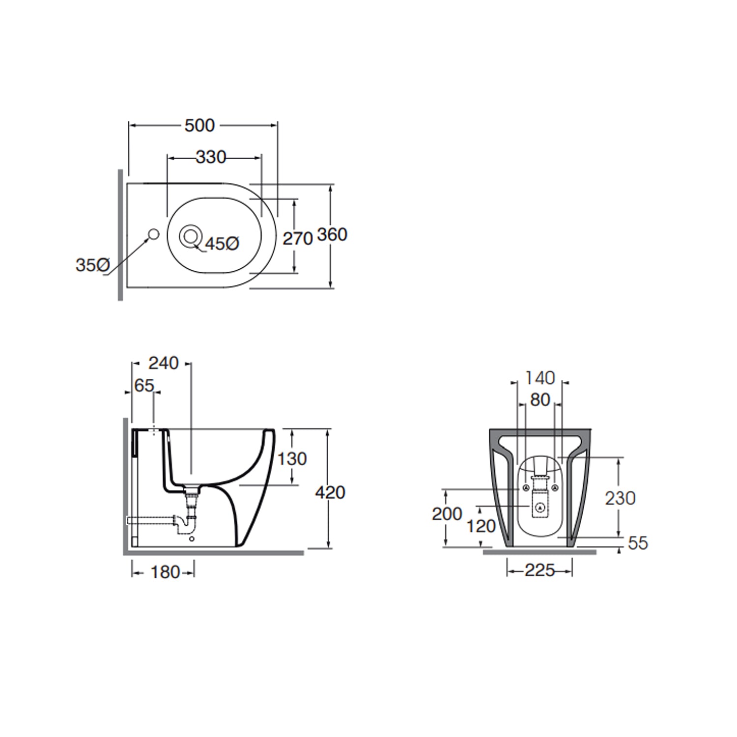 - Bidet abbinato in Bianco lucido, dimensioni 53x36x42 cm.