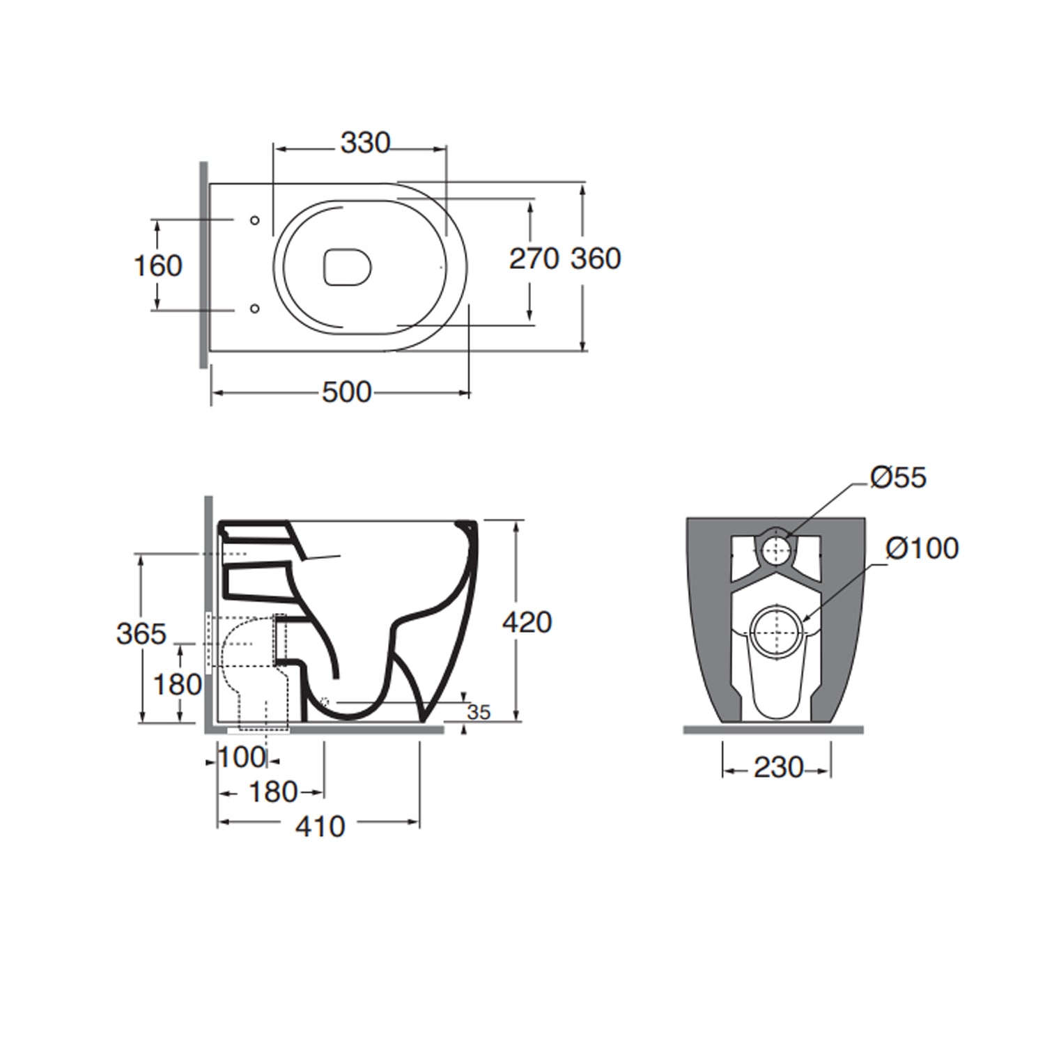 - Vaso WC filomuro 50x36x42 cm con sedile in termoindurente a sgancio rapido.