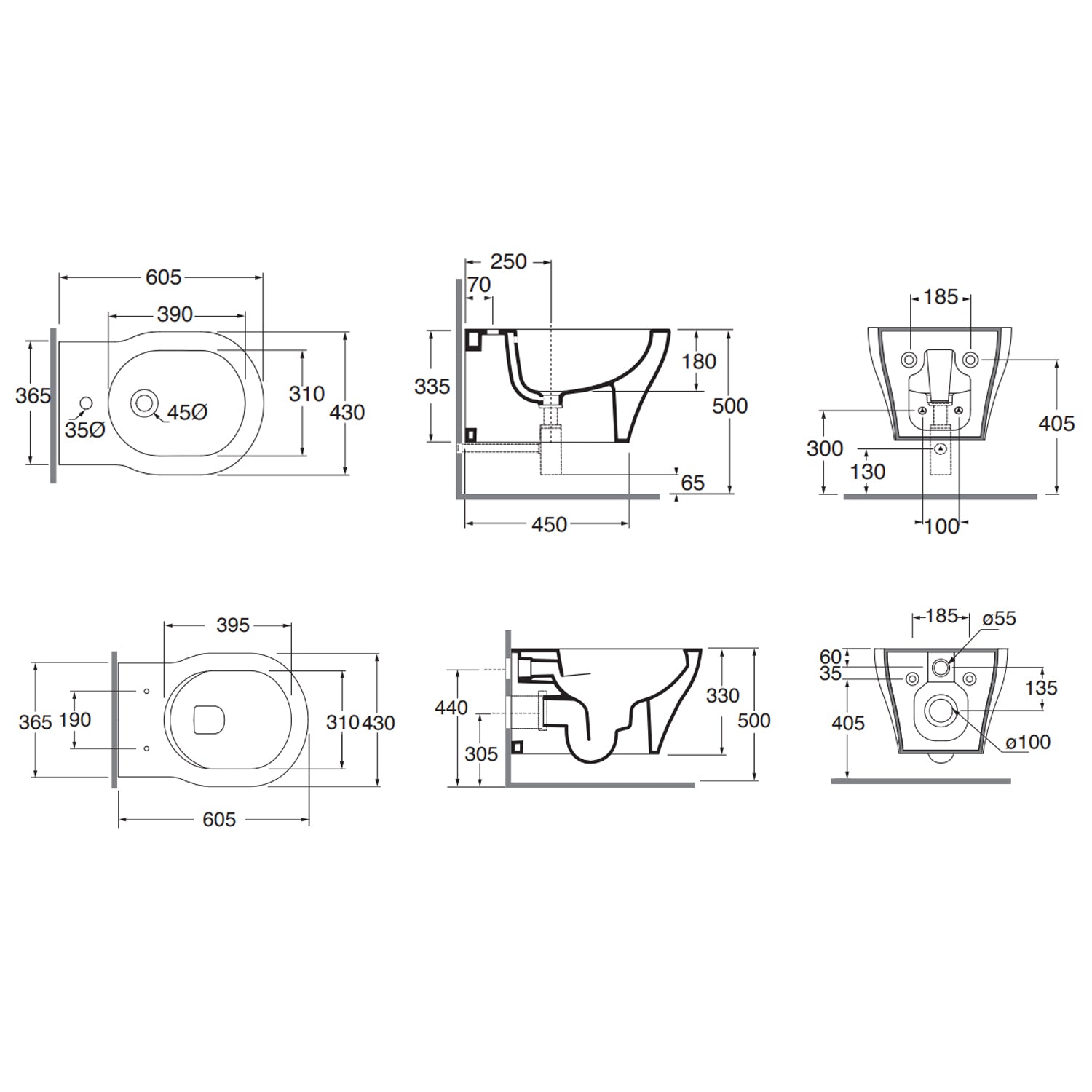 • Set sanitario XL: WC sospeso + bidet sospeso, pensato per bagni ampi.