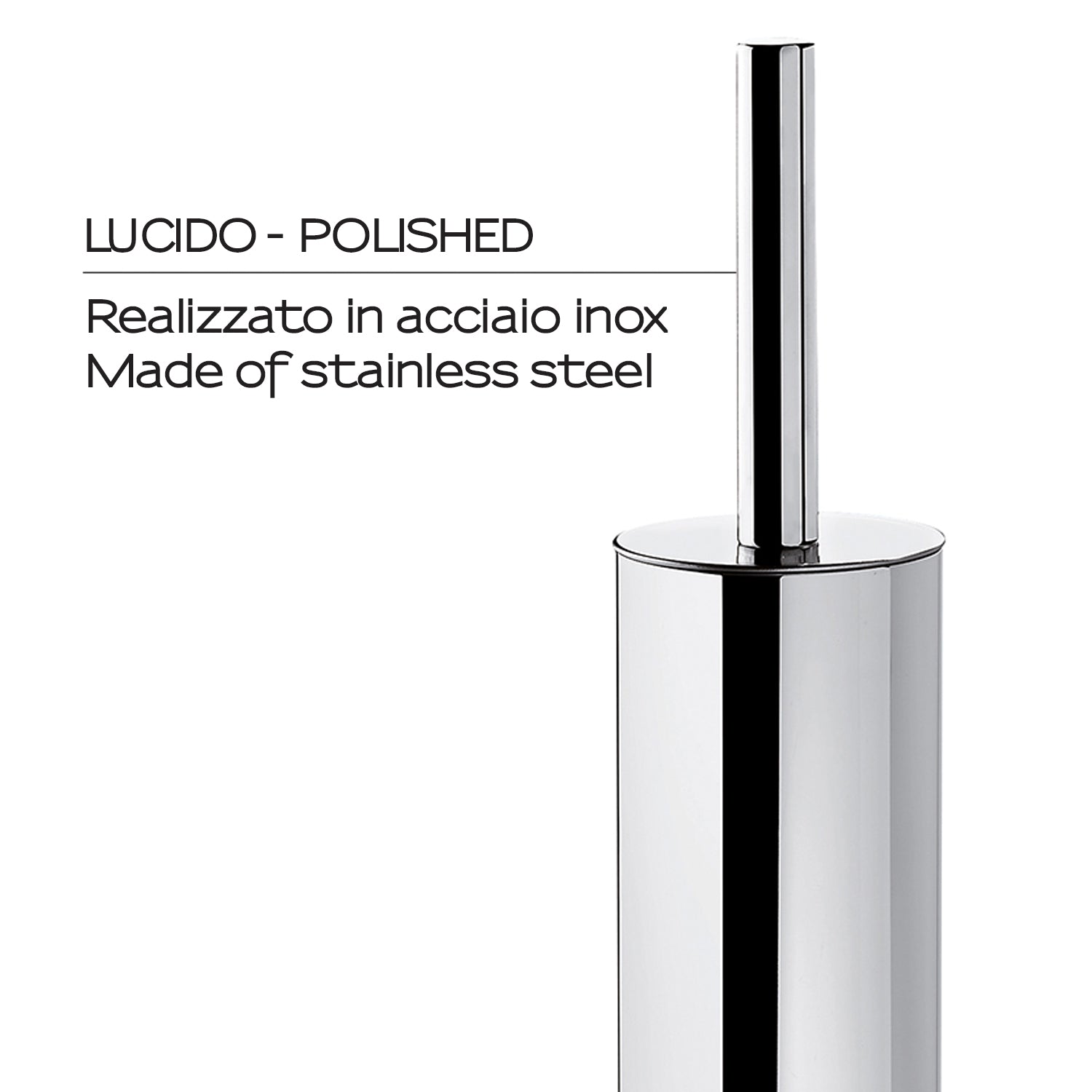 Progettato per offrire una presenza essenziale ma distintiva, questo scopino adotta proporzioni sobrie e linee pulite tipiche della collezione. Il corpo cilindrico, la finitura cromata lucida e la tazza interna rimovibile privilegiano una pulizia agevole e una manutenzione minima. Dimensioni compatte (L 7,7 × P 8,5 × H 40,3 cm) lo rendono adatto a bagni di ogni metratura. L’installazione a parete avviene con viti incluse, con opzione di fissaggio tramite collante venduta separatamente; un segno di qualità e affidabilità made in Italy.