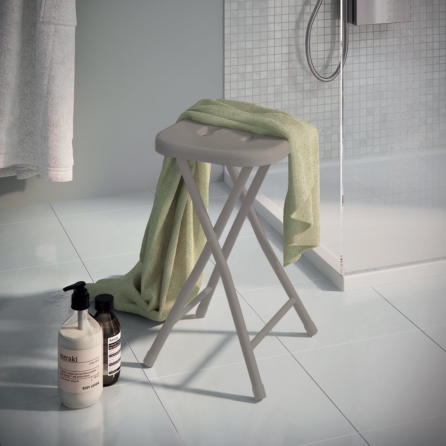 L'arredo bagno si eleva con lo sgabello richiudibile Gedy in Tortora chiaro: un complemento che unisce funzionalità, resistenza e una sobria eleganza. Realizzato in resine termoplastiche e metallo, presenta linee pulite, seduta ampia e una finitura lucida che riflette la luce con discrezione.