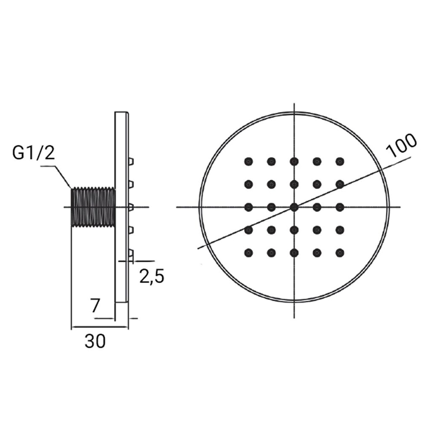 Soffione body jet a parete 100mm in ottone