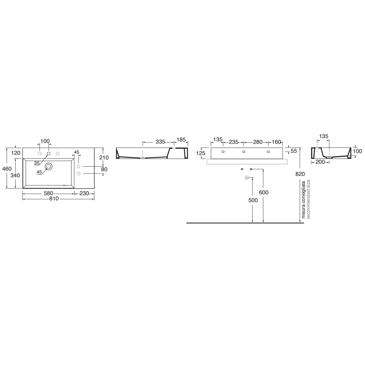 Eckiges Aufsatz-/Hängewaschbecken aus Keramik Azzurra Elegance 81x46 cm