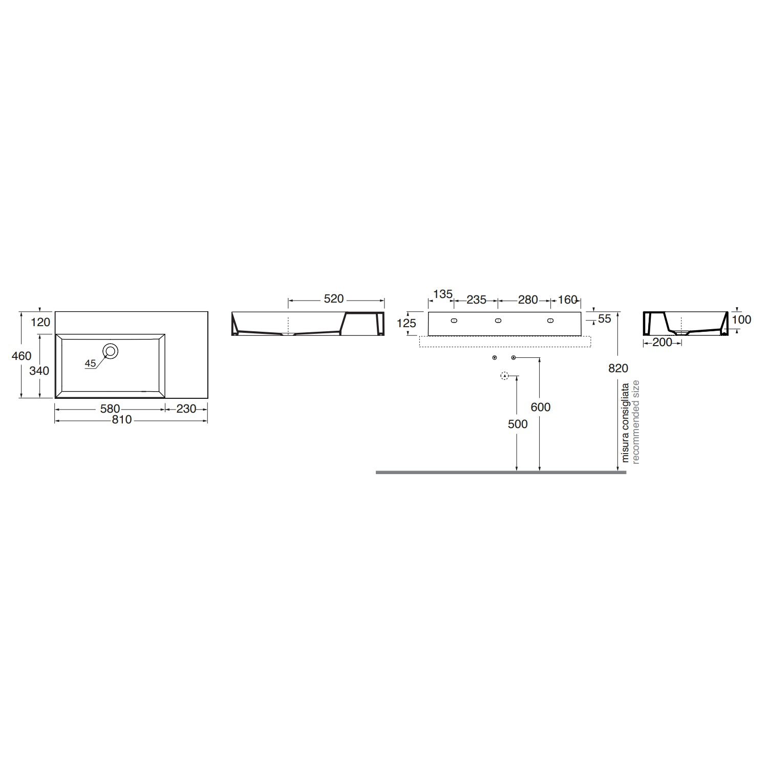 Italienische Herkunft und handwerkliche Meisterschaft zeigen sich in jedem Detail: minimale Kanten, ausgewogene Proportionen und die Ablagefläche auf der rechten Seite, die eine praktische Arbeitsfläche bietet. In begrenzter Stückzahl erhältlich, ist dieses Waschbecken für diejenigen gedacht, die ein Objekt suchen, das dem Bad dauerhaften Wert verleiht und es in einen Raum mit Charakter und Beständigkeit gegen die Zeit verwandelt.